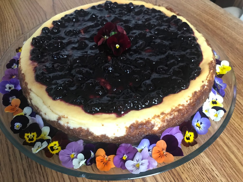 Today is my husband’s birthday! So I made him his favorite huckleberry cheesecake. Now depending on where you are, huckleberries can be a variety of things, or so I hear. Here in Montana, we go up into the mountains and fight the bears for them. Kidding. Totally kidding. If there’s a bear, the bear can have them. But there definitely are bears in the vicinity and I am super grateful that we have never run into one.
