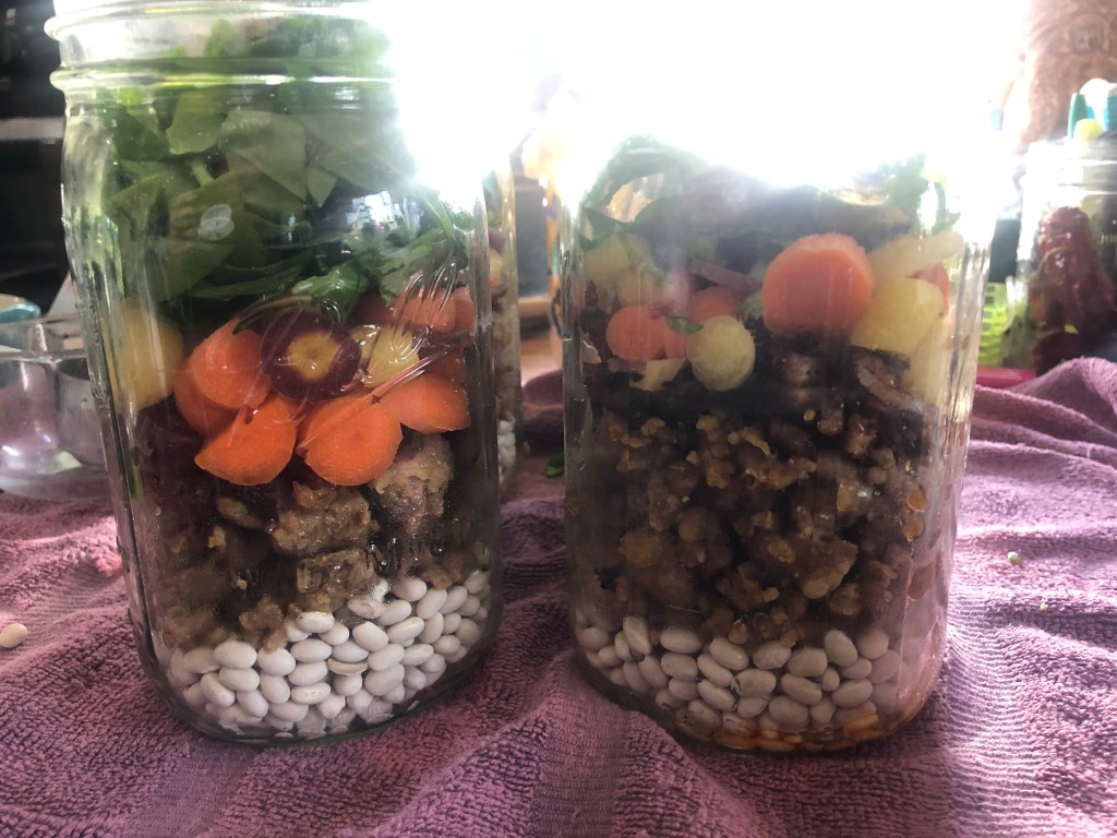 Please keep in mind my photos are taken before I add broth and debubble, they just look pretty to me with all the veg and seasonings on top. These don’t look particularly..err..beautiful when they come out of the canner in the jar, but they look fine in the bowl and taste delicious, so to me that is what matters most!