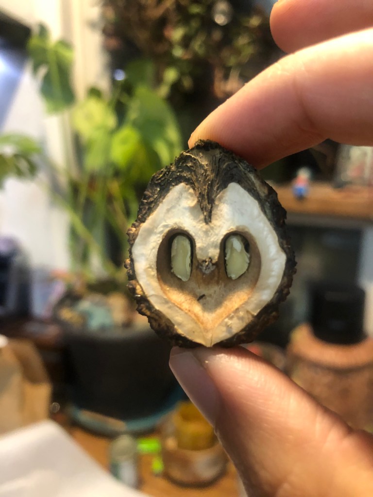 Could start off with this beautiful owl heart looking thing! A black walnut! (I nibbled out alot of the actual nutmeat) Now, I am nowhere near as good at explaining all the ins and outs of this nutty conversation, but over at practicalselfreliance.com, she has got you covered! We have a MASSIVE tree, and getting to most of the walnuts is actually quite difficult, but I did just wonder to myself if my chickens might benefit from eating them. Haven’t looked that one up yet, don’t quote me.