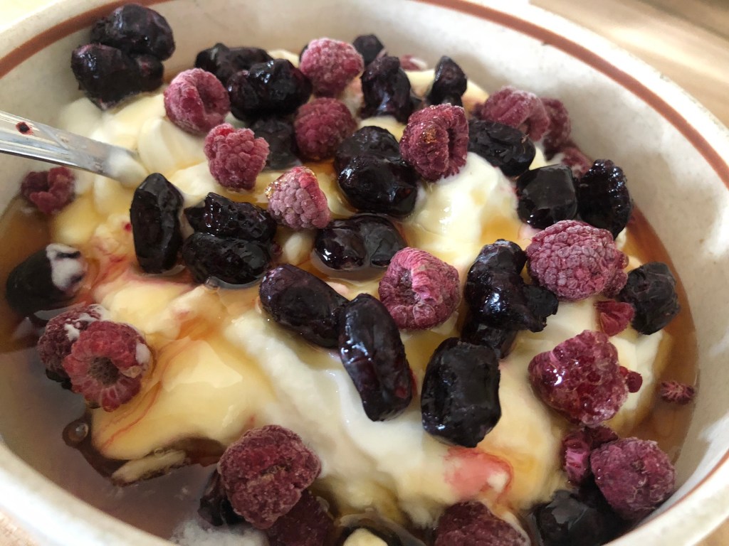 It was so wonderful to have some plain yogurt with maple syrup and raspberries from the garden. I also found some honeyberries that I bought at the farmer’s market in whitefish. Hopefully this year my plants will produce, but I might still go check out the u -pick they have down in whitefish for them.